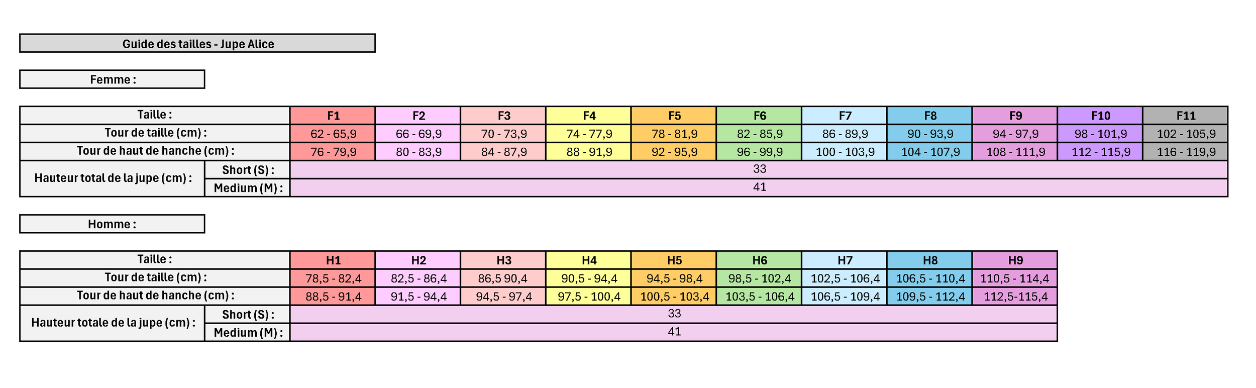 Le model sur les photos est un homme de 1m78 pesant 75kg. Il porte une jupe Alice en taille H2 en version short.